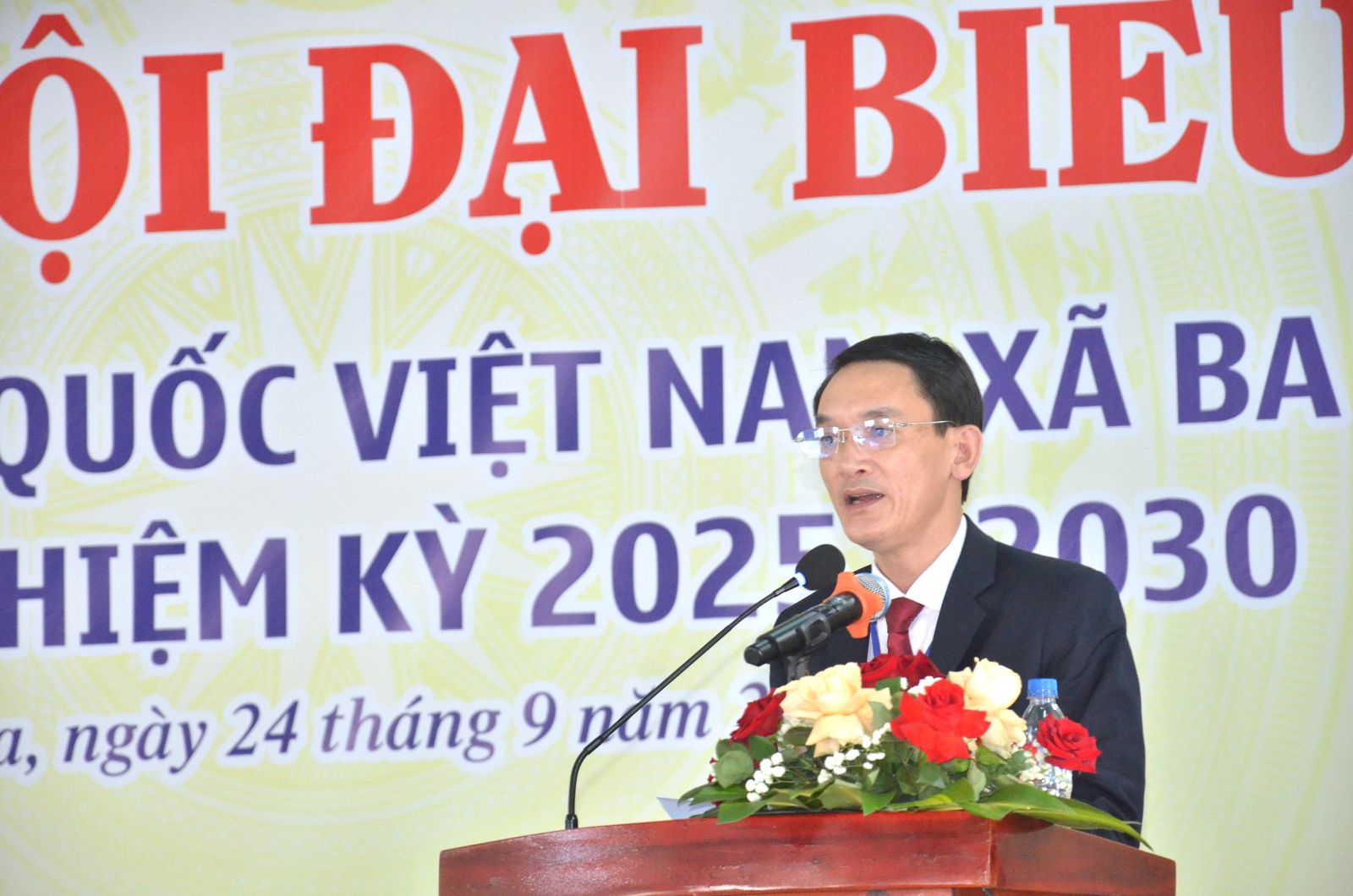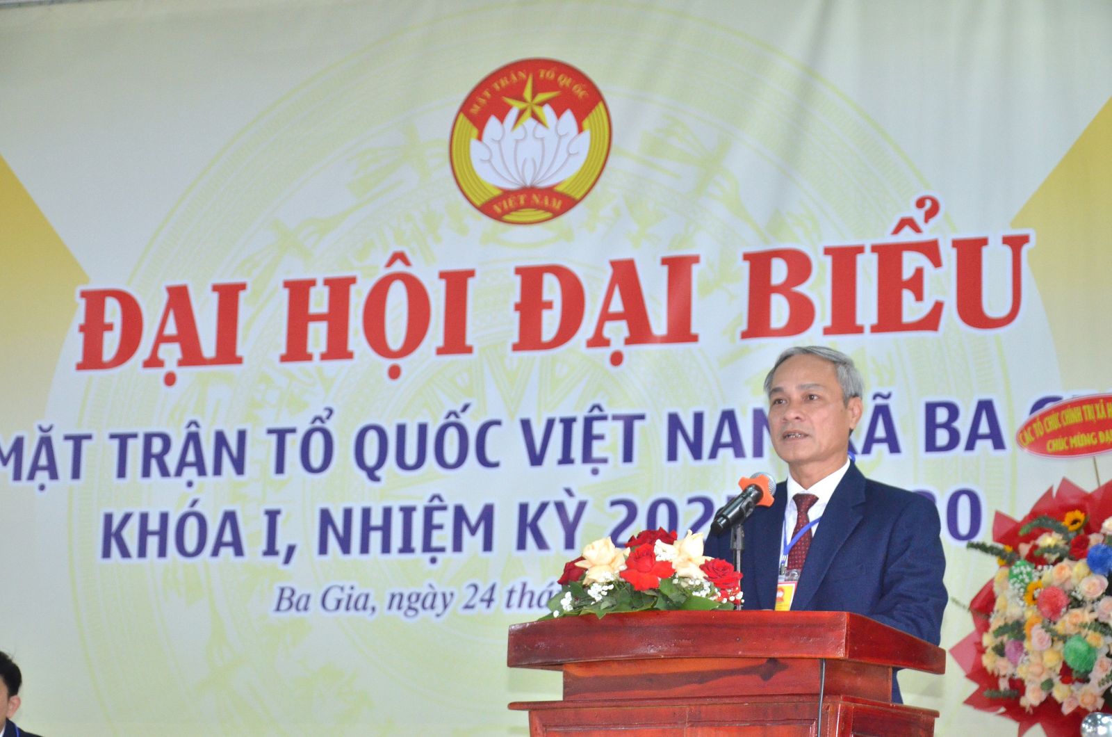 Phát biểu chỉ đạo tại Đại hội, đồng chí Võ Văn Tâm – Phó Bí thư Thường trực Đảng ủy xã nhấn mạnh: “Đại hội lần thứ I của Ủy ban MTTQ xã là mốc son quan trọng, khẳng định vai trò của Mặt trận trong giai đoạn mới. Với phương châm “Đoàn kết – Dân chủ – Đổi mới – Sáng tạo – Phát triển”, Ban Thường vụ Đảng ủy xã Ba Gia tin tưởng và mong muốn rằng Mặt trận phải thật sự là vòng tay, chia sẻ với những nơi bất trắc, trái gió, trở trời, động viên kịp thời những khoảng trống yếu thế mà cơ chế chính sách chưa kịp thời phủ khắp; Mặt trận phải thật sự là nơi giúp cho người dân thông thái hơn về chủ trương của Đảng, am hiểu hơn chính sách pháp luật của Nhà nước để phát triển kinh tế, nâng cao chất lượng cuộc sống, góp phần cùng Đảng, chính quyền xây dựng quê hương Ba Gia Anh hùng ngày một giàu đẹp, văn minh, hạnh phúc”.