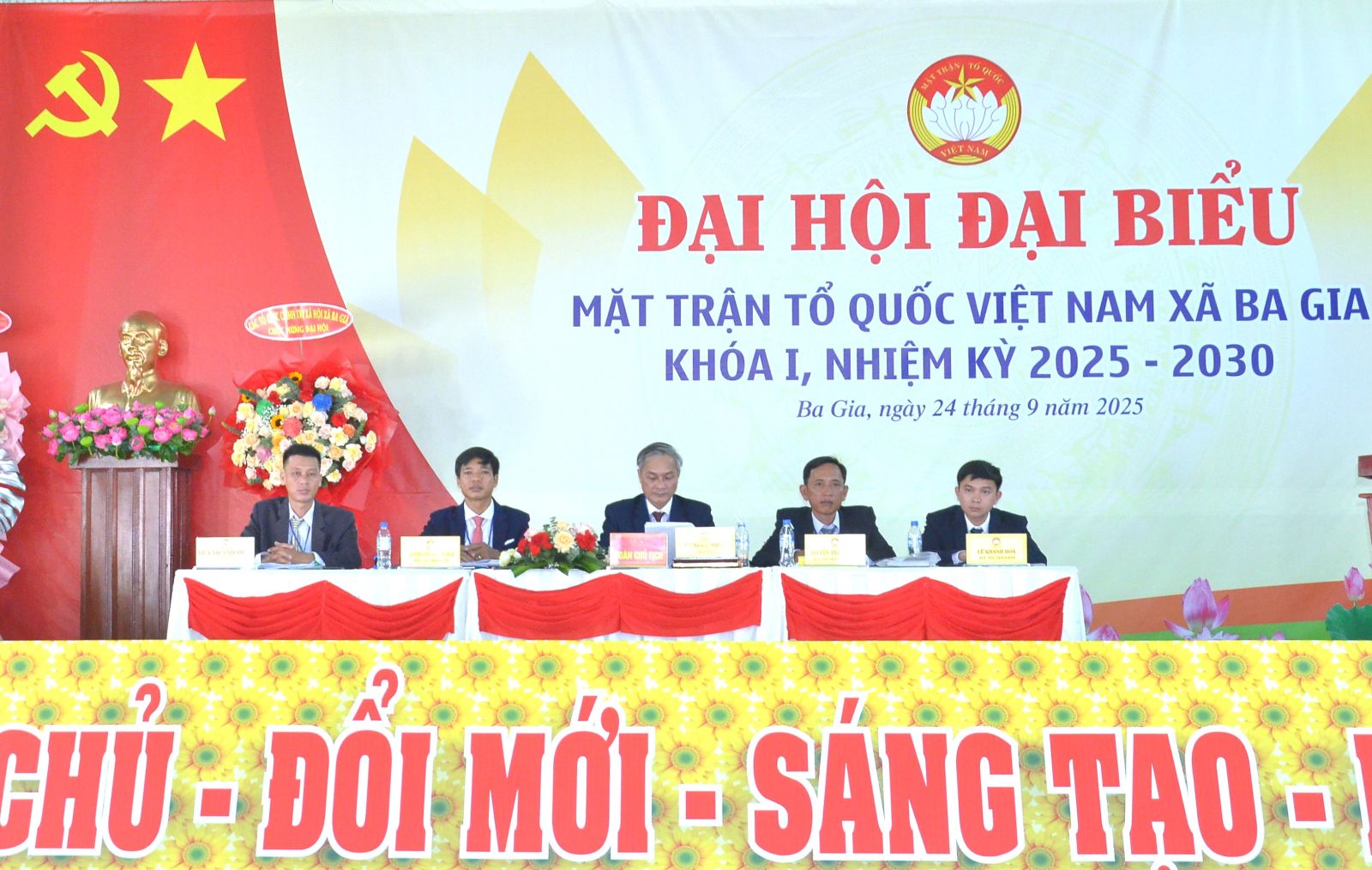 Chiều ngày 24/9/2025, tại Nhà Văn hóa xã Ba Gia (thôn Phú Thành), Đại hội đại biểu Mặt trận Tổ quốc Việt Nam xã Ba Gia lần thứ I, nhiệm kỳ 2025 – 2030 đã diễn ra thành công tốt đẹp. Đại hội có sự tham dự của 150 đại biểu chính thức, đại diện cho các tầng lớp nhân dân trên địa bàn xã.