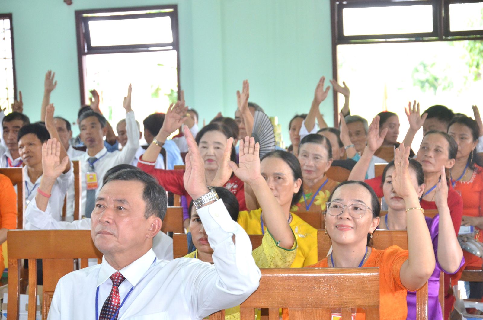 Báo cáo cũng đề ra phương hướng nhiệm kỳ 2025 – 2030: nâng cao vai trò nòng cốt của Mặt trận trong xây dựng khối đại đoàn kết toàn dân; phấn đấu hằng năm vận động Quỹ “Vì người nghèo” đạt và vượt chỉ tiêu; duy trì 100% khu dân cư tổ chức Ngày hội Đại đoàn kết; đến cuối nhiệm kỳ cơ bản không còn hộ nghèo; mỗi khu dân cư có ít nhất một công trình hoặc phần việc tiêu biểu phục vụ cộng đồng.