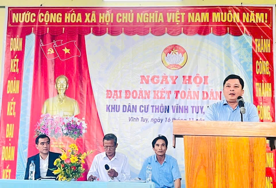 Đồng chí Võ Xuân Hòa - Bí thư Đảng ủy, Chủ tịch HĐND xã dự Ngày hội Đại đoàn kết toàn dân tộc tại Thôn Vĩnh Tuy
