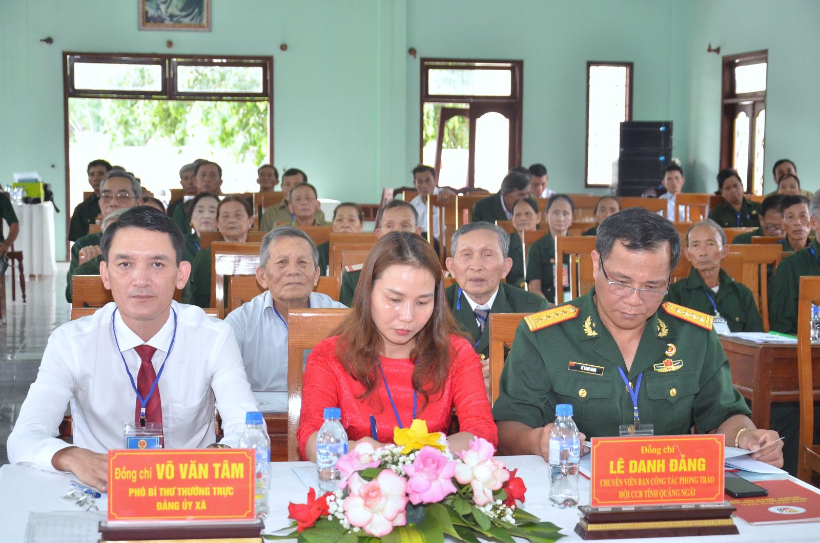 Dự Đại hội có đại diện Hội Cựu Chiến binh tỉnh. Về phía địa phương có đồng chí Võ Văn Tâm – Phó Bí thư Thường trực Đảng ủy xã; đồng chí Trần Đức Hùng – Phó Bí thư Đảng ủy, Chủ tịch UBND xã; đồng chí Nguyễn Tấn Linh – Ủy viên Ban Thường vụ, Phó Chủ tịch HĐND xã; đồng chí Từ Ngọc Minh – Ủy viên Ban Thường vụ, Chủ tịch Ủy ban MTTQ Việt Nam xã, cùng lãnh đạo các cơ quan Đảng, chính quyền, đoàn thể, Bí thư chi bộ, Trưởng thôn, Trưởng ban công tác Mặt trận các thôn và 105 đại biểu chính thức đại diện cho hơn 520 hội viên CCB trong toàn xã.