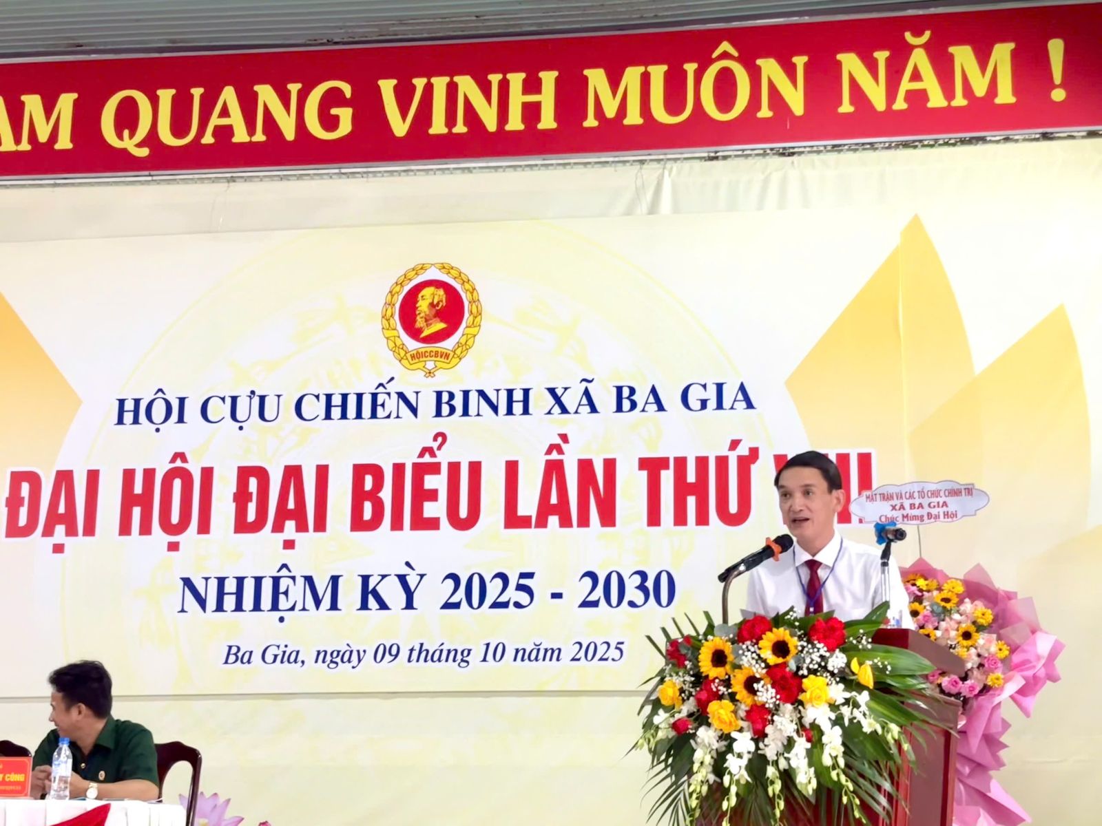 Chiều ngày 09/10/2025, Hội Cựu chiến binh (CCB) xã Ba Gia long trọng tổ chức Đại hội Đại biểu Hội CCB xã lần thứ VIII, nhiệm kỳ 2025 – 2030.